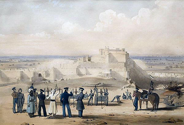Similarly, by the mid-19th century, the English East India Company had acquired de facto control over much of the subcontinent, while the reigning Mughal ruler, Bahadur II (r. 1837-57), had been reduced to a virtual prisoner in Delhi’s Red Fort, an emperor in name only. But in 1857, a rebellion broke out when a disaffected detachment of the Company’s own Indian troops massacred their English officers in the north Indian cantonment of Meerut. Seeking support for what they hoped would become an India-wide rebellion, the mutineers then galloped down to Delhi and enthusiastically rallied around a rather bewildered Bahadur II. Notwithstanding his own and his empire’s decrepit condition, to the rebels, this feeble remnant of the house of Babur still represented India’s legitimate sovereign.
