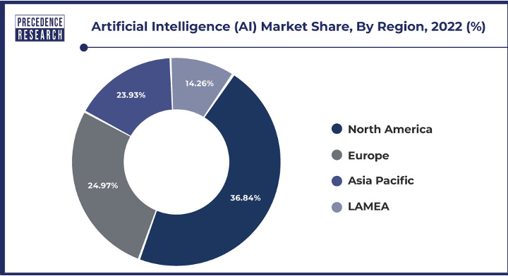 Figure 2 illustrates a pie chart displaying the distribution of the Artificial Intelligence (AI) market share across various regions in 2022, sourced from Precedence Research.