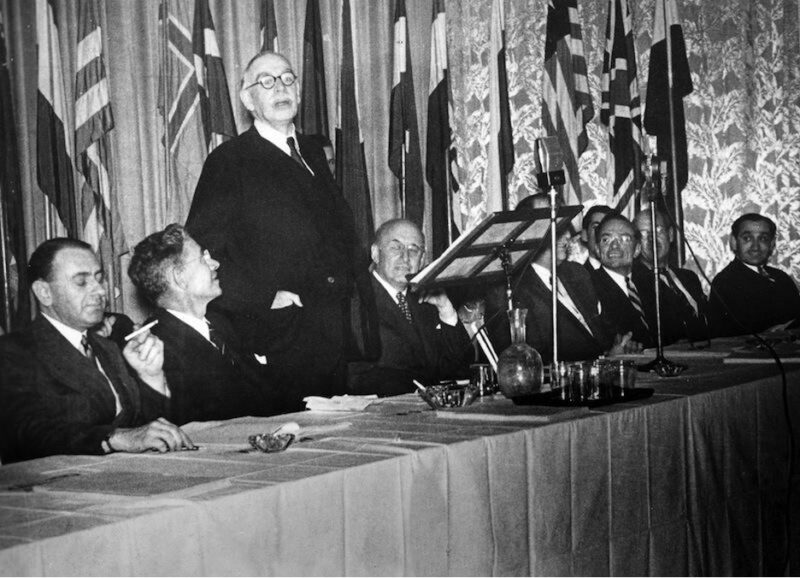 As early as the Atlantic Charter in 1942, the new U.S. President, Franklin Roosevelt, and the new British Prime Minister, Winston Churchill, set themselves the common goal of establishing a world government at the end of the conflict. The Anglo-Saxons, who imagined they could rule the world, did not, however, agree amongst themselves on how to go about it. Washington did not wish London to meddle in its affairs in Latin America, while London had no intention of sharing the hegemony of the Empire over which “the sun never set”. During the war, the Anglo-Saxons signed numerous treaties with Allied governments, including those in exile, which they hosted in London.
