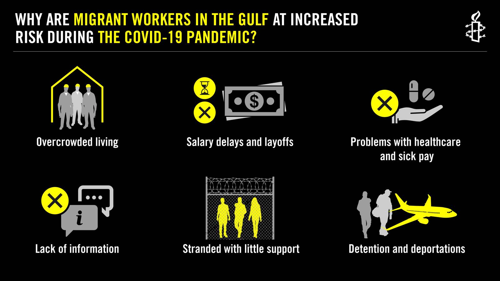 Amnesty International raised concerns about the state of migrant workers under Covid-19 in the Gulf.